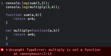 호이스팅에 있어서 함수선언문과 함수표현식의 차이점을 알아야한다. 함수선언문을 사용할 경우에는 함수명이 곧 변수명이기 때문에 함수전체가 호이스팅되지만, 함수표현식은 선언부변수만 호이스팅이 되게된다.