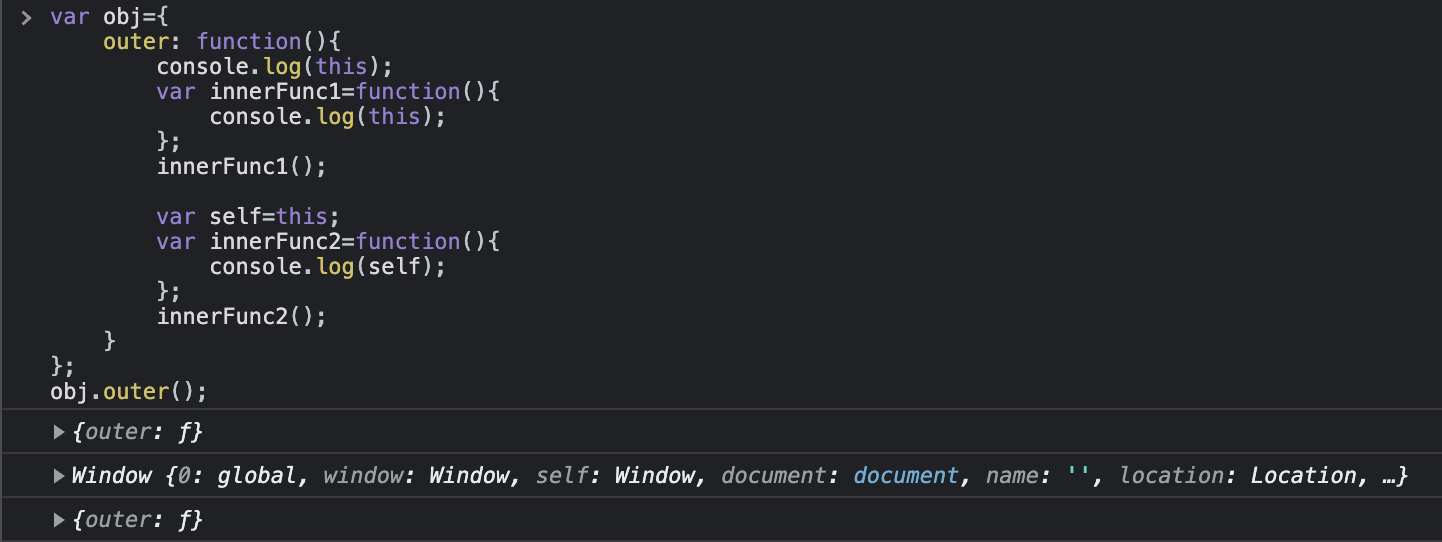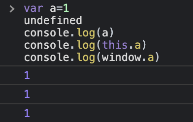 1) 전역공간에서의 This: 전역공간에서는 전역객체를 가리키게된다. 브라우저 환경에서 전역객체는 window이고, Node.js에서는 global 이다. 자바스크립트에서 모든 변수는 특정객체의 프로퍼티로서 동작하게되는데, 전역변수를 선언하면 자바스크립트 엔진은 이를 전역객체의 프로퍼티로 할당하게 된다.