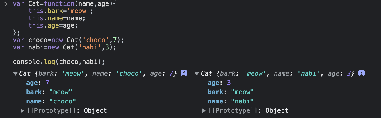 5) 생성자 함수 내부에서의 this: 생성자 함수를 호출하면 생성자의 프로토타입 프로퍼티를 참조하는 __proto__라는 프로퍼티가 있는 객체를 만들고, 미리 준비된 속성을 해당 객체에 부여하게 된다. 즉, 인스턴스를 가리키게 된다.