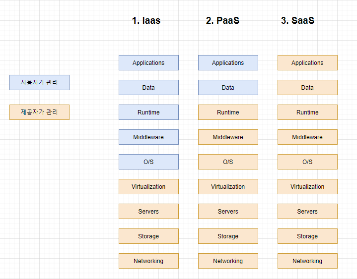 3) IaaS (Infrastructure as a Service): 클라우드 서비스를 텅해 기술 구성요소 제공