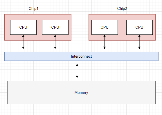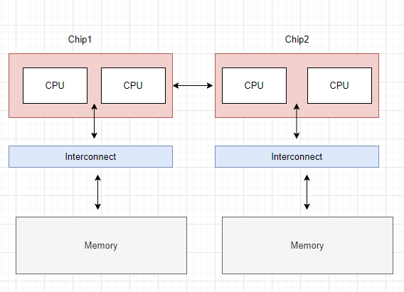 UMA멀티코어 시스템은 모든 core에서 메모리에 액세스 하는데 걸리는 시간이 같지만, NUMA 멀티코어 시스템은 메모리에 직접 연결된 core의 메모리 액세스 속도가 더 빠르다.
