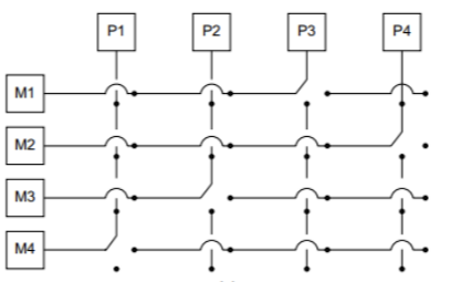 1) Crossbar Interconnect: 프로세서 2개가 동일한 프로세서로 통신을 시도하지 않는한, 모든 프로세서는 다른 프로세서와 동시에 통신을 할 수가 있다. 하지만 스위치의 개수가 많이 필요하다.