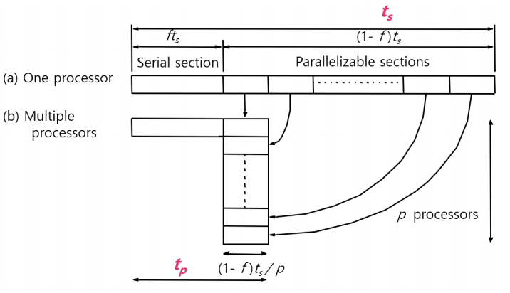 - p = 코어 혹은 프로세서의 수