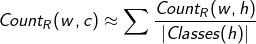 워드넷을 통해 단어의 상위어를 클래스로 삼는다면 선택 선호도를 잘 활용할 수 있을 것이다. 필립래스닉은 술어와 클래스 사이의 확률분포를 정의하는 출현빈도의 계산수식을 제안했는데, 술어w와 함께 출현한 단어 h의 빈도를 세고, h가 속하는 클래스의 집합의 크기로 나눈것이다.