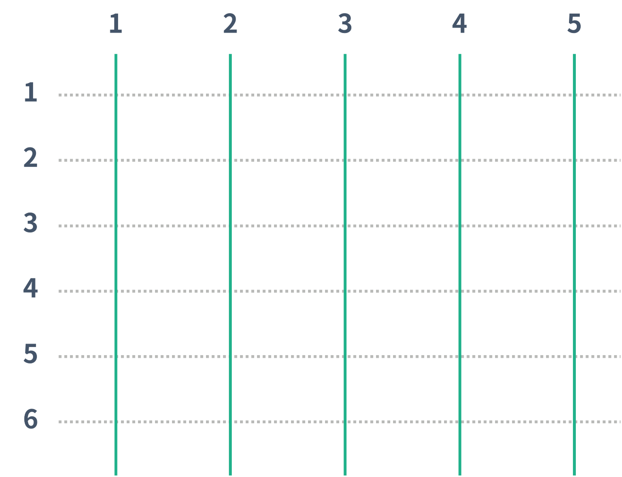 가장 위에 있는 점선의 번호는 1번이고, 아래로 내려갈 때마다 1이 증가한다. 세로선은 가장 왼쪽에 있는 것의 번호가 1번이고, 오른쪽으로 갈 때마다 1이 증가한다.